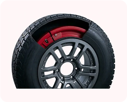 Run-flat inserts installed in the tires allow the vehicle to remain mobile even after complete tire deflation, enabling occupants to escape dangerous situations.